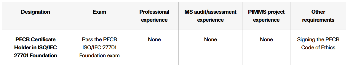The certificate requirements for the ISO/IEC 27701 Foundation are: